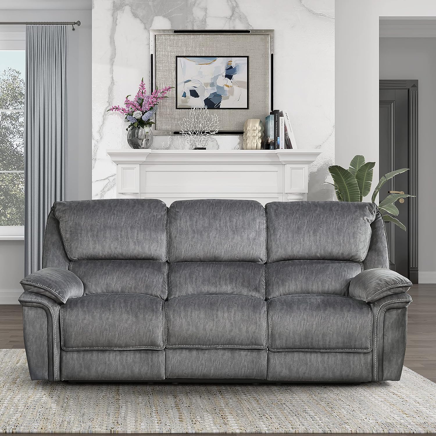 Elevate your living room with our Braddock Collection. A durable manual metal reclining mechanism completes the construction of the wooden recliner frame. The selected gray textured microfiber covers its frame, while the foam boxed pocket coil cushion provides a just right support and comfort to the human body. This reclining loveseat will be a perfect addition to your living space.