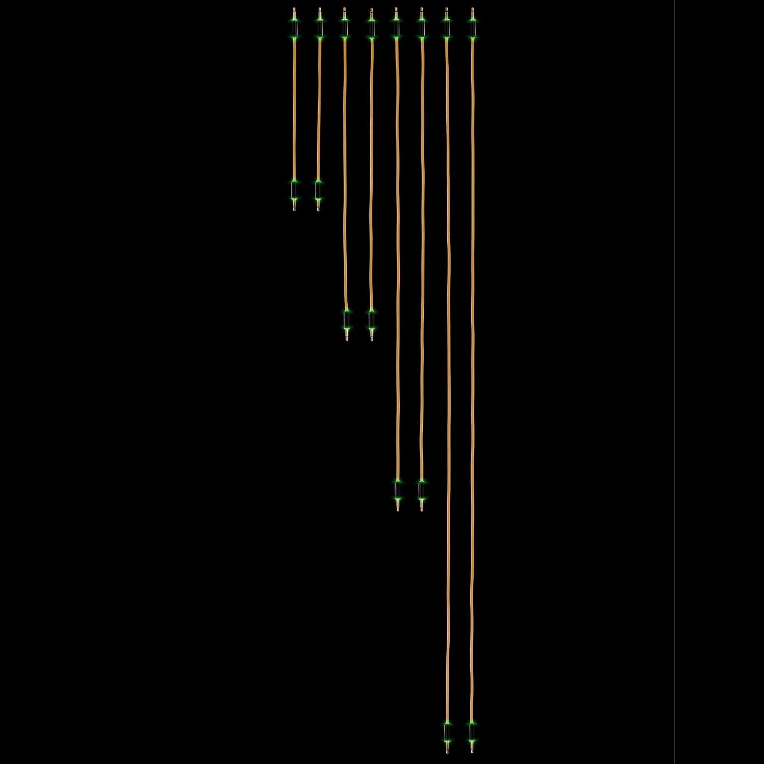 Halo is the latest addition to the durable and elegant Candycords range.Candycord Halo is a unique and novel range of coloured modular patch cables with discrete LED lighting elements within its connectors, lighting up when Control Voltages (CV) passes through. Halo is great for clocks, gates, triggers, and showcasing signal paths.Visual OutputHalo LEDs use CV to switch between colour pairs: red for negative polarity, blue/green for positive. Use your modular skills to create exciting yellows and purples as signals oscillate between the colour pairs.New Musical AdventuresThese cables will encourage, educate and inspire along the way. If you ever wanted your Modular systems to be more responsive and intuitive, Halos might be for you. Designed for your enjoyment, let the visual feedback from these bi-colour LED cables light your way.Expertly FinishedCandycord Halos are finished with high grade materials, and also gold-plated connectors (for a lossless connection). They come in a range of delicious pastels as well as matt black and fresh white. The straight cables come in every colour and in lengths of 15, 30, 50 and 80cm in pairs or 8-packs. For a tricky longer connection, there is a 150cm Halo cable sold individually. Our range extends into our even more exciting Curly Candycord Halos - a long cable that extends to 6 meters, or right-angled short Curlies with beautiful round-top light-up connectors.Cable Specification:1st connector: 3.5mm mini mono jack straight2nd connector: 3.5mm mini mono jack straightcables shape: straightcables lengths: 2 x 15cm, 2 x 30cm, 2 x 50cm, 2 x 80cmcables colour: Mint GreenLED signal indicator: Red and Green
