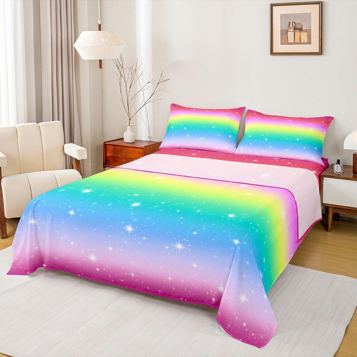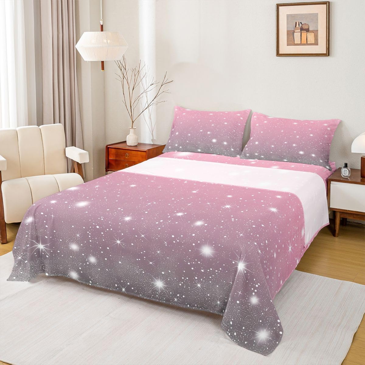 Welcome to our store! We have specialized in home textile for many years. We are contribute to provide the best customer service and products. Size Information Twin size: 1 Fitted Sheet (39"x75"x16") 1 Flat Sheet (96"x66") and 1 Pillowcase (20"x30"). Full size: 1 Fitted Sheet (54"x75"x16") 1 Flat Sheet (96"x81") and 2 Pillowcases (20"x30"). Queen size: 1 Fitted Sheet (60"x80"x16") 1 Flat Sheet (102"x90") and 2 Pillowcases (20"x30"). King size: 1 Fitted Sheet (78"x80"x16") 1 Flat Sheet (106"x90") and 2 Pillowcases (20"x36"). Versatility We have many kinds of styles for you to choose. You can easily find a product that suits the style of your room perfectly. Modern Design Personalized As a manufacturer of digital printed home textiles, we follow current trends and bring you the latest and stylish home textile products. The item will make the room decorated in exquisite taste.