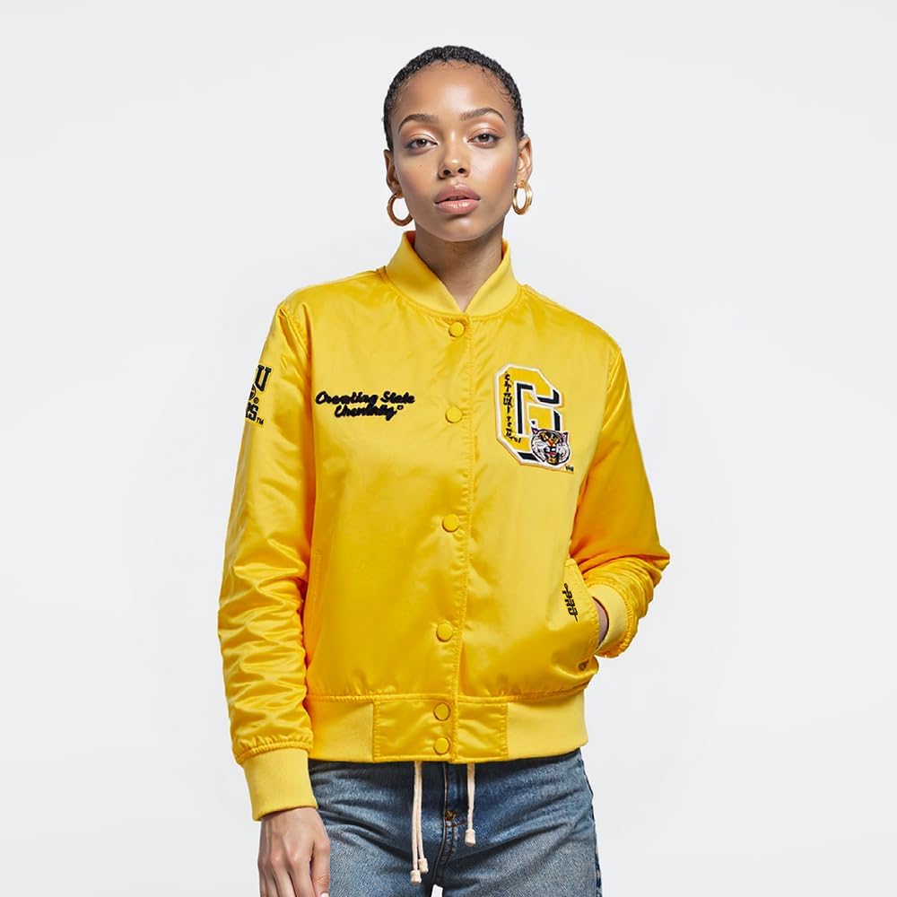 Show your team spirit with the Womens College Classic Essentials Satin Jacket. This iconic piece captures the vibrant energy of college sports culture with chenille applique and satin stitch embroidery. Officially Licensed Merchandise for true fans. Stand out in style.