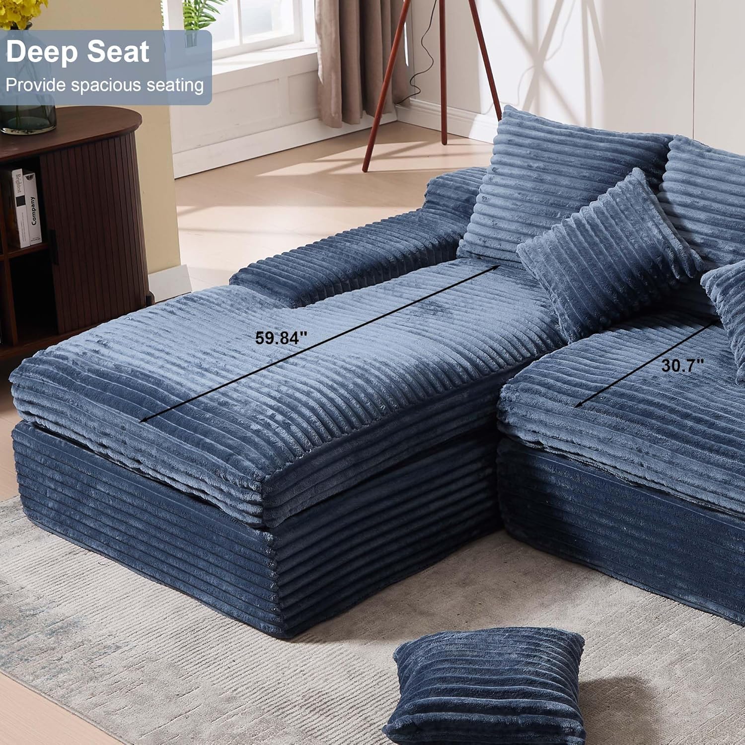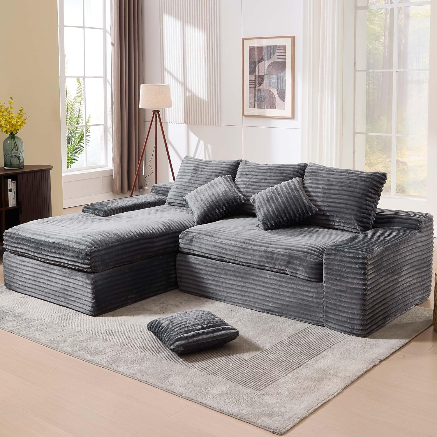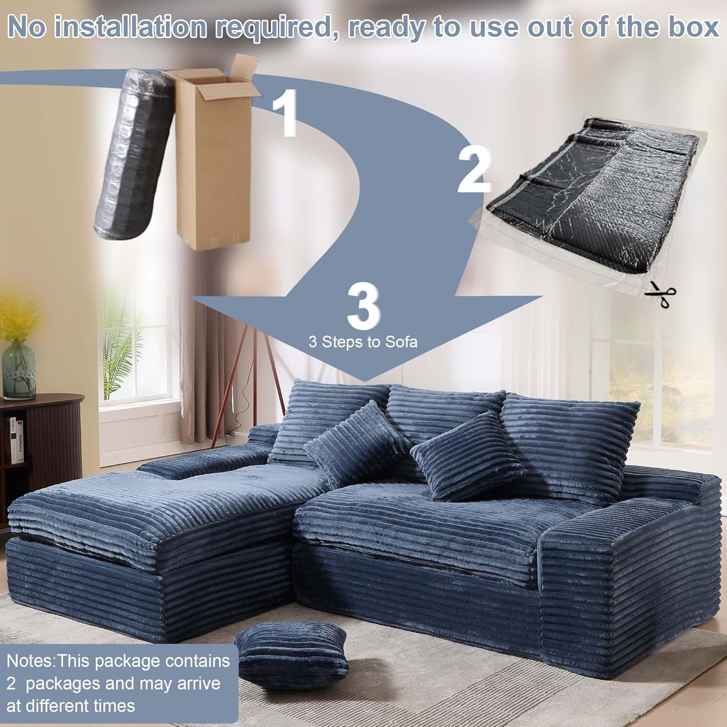 | Additional Features | 3 Pillows, Compressed Sofa, Deep Seat, L Shape Sofa with Chaise, No Assembly Required |
