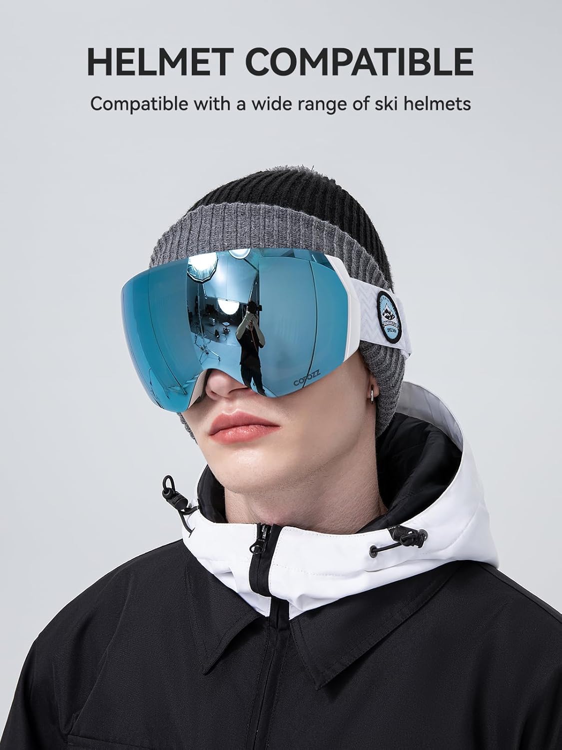 COPOZZ H2 Ski Goggles, Hyperbolic OTG Snow Goggles, Reduce Visual Distortion, Anti Fog UV Protection Interchangeable Lens, Snowboard Goggles for Adult Men Women Youth
