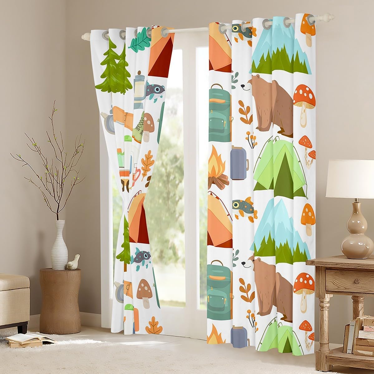 Kids Camping Curtains, Farmhouse Camper Theme Blackout Curtains For Home Bedroom Living Room, Camper Travel Car Window Curtains & Drapes, Western Rustic Bear Darkening Curtains, 2 Panels 42"X63"