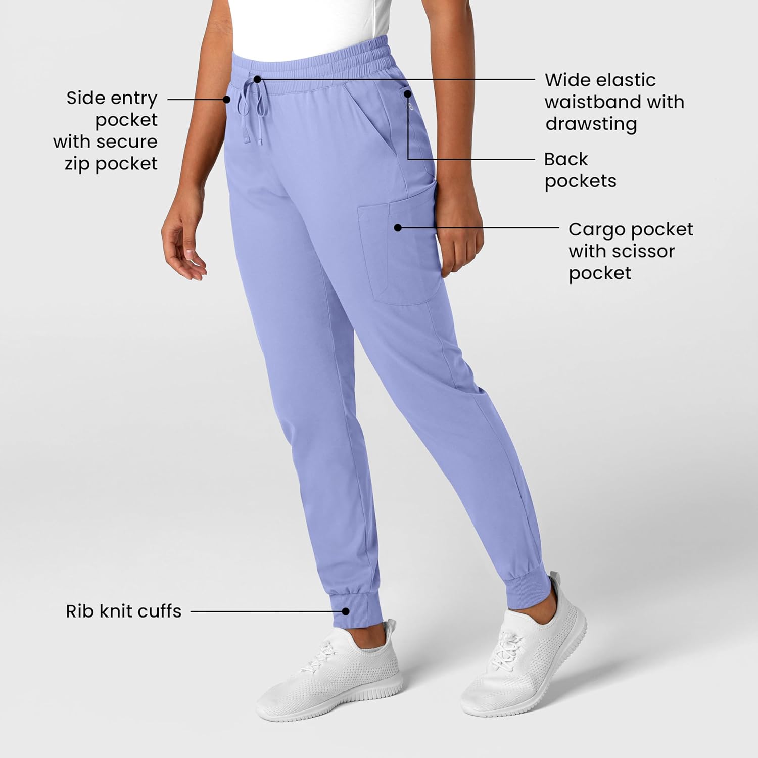 Step into your nursing journey with confidence in the Wink Boundless Women's Jogger Scrub Pant. Designed for new nurses and students, these joggers redefine comfort and style. Crafted from buttery soft, flexible fabric, these women's scrub pants deliver all-day wearability while keeping you on-trend. Practical details like multiple secure pockets and an adjustable drawstring waist ensure you stay organized and comfortable through every shift. Whether you're a nursing student navigating clinicals or a new nurse stepping into the field, these joggers are the perfect blend of performance and style.